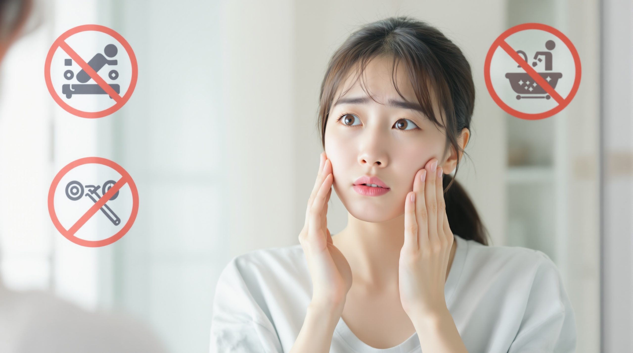 術後に避けるべき主なNG行動として、激しい運動、フェイスマッサージ、長時間の入浴やサウナ、過度な飲酒が挙げられます。これらの行動は血流を促進させ、ボトックスの拡散や効果の減少を招く可能性があるためです。